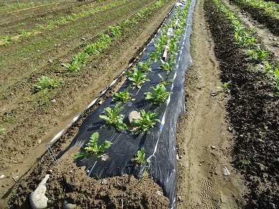 29チーム、それぞれ創意工夫をこらし、マルチとよばれるビニールを掛ける