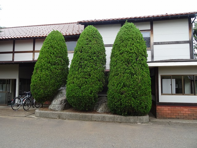 カイヅカイブキのいろいろ 2016.10.05 上の2枚の写真の木は、同じ木なのですが様子が随分違います。 木の名前は”カイズカイブキ” ヒノキ科の品種です。 葉を切ることで、上の写真のように かわいい木立となったり、下の写真のようにらせん状 に火炎のように勢いよく伸びる木立ちとなり、風にも強い木で、塀の代わりに、当社でも 工場周辺に多く植えられています。