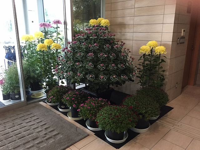 今年も恒例の菊が飾られています 2016.10.31 本社ビルエントランス P11(第11工場)エントランス 今年も日本菊花全国大会にて、国土交通大臣賞を受賞されたこともある 磯部工作所の磯部様と、馬場鉄工の馬場様から大切に育てられた 菊をご提供いただきました。 いい香りと共にお客様をお出迎えさせていただいております。 本社にいらっしゃいました際には、是非ご覧下さい。