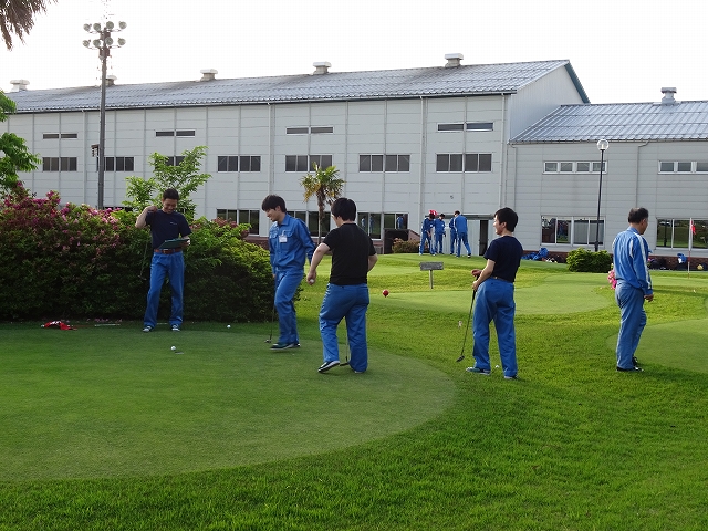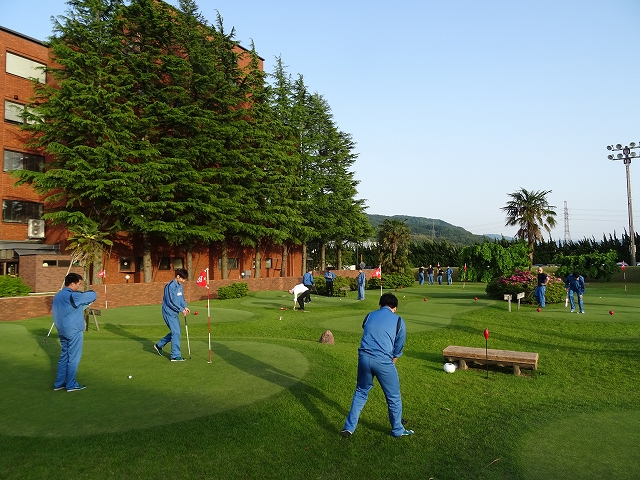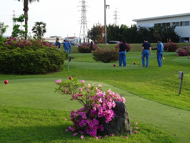 春のパットゴルフ大会も大賑わい 2018.05.21 5月から春のパットゴルフ大会が開催されております。 新入社員たちには、ゴルフ自体がはじめての人も多く、まずはルールからといった具合です。 天気のいい日に芝生の上に立つと、だれでもが気持よく最高のリフレッシュ気分を感じます。 スコアーの良し悪しは二の次で、みんなで楽しめる大会です。