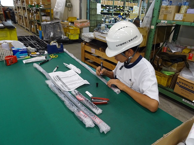 まず、物流課で体験している学生は、発注された中村留の製品を傷がつかないように