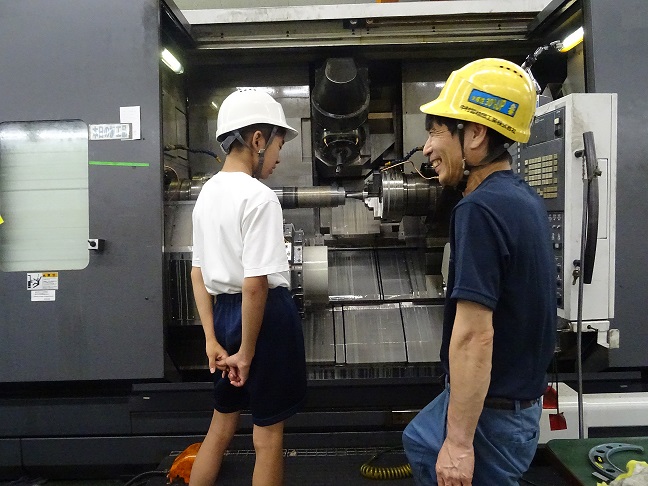 ここでは主軸を作る作業を中村留のNC旋盤を使って作業をしている様子を見学していました。