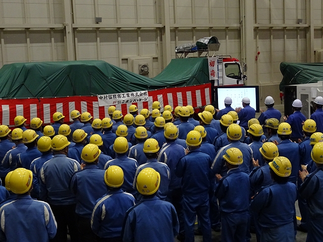 2019年初荷式 2019.01.08 1月7日仕事はじめの日に初荷式が開催されました。 中村社長より「今年も多くの注文頂いた製品をしっかりお届けしてほしい、 会社は70周年を迎える年、我々の心のこもった製品を品質・納期を守り お客様が喜んで頂けるよう努めよう」とメッセージがありました。 続き、中村副社長の挨拶、村本常務の万歳三唱後出荷されていきました。 日本、フランス、アメリカと出荷先は違いますが、心を込めて お客様に製品をお届け致します。
