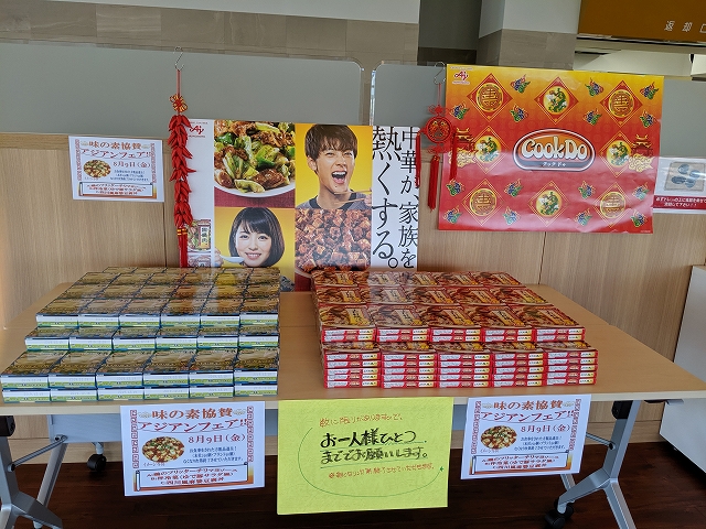 食堂にてアジアンフェア―開催!! 2019.08.09 本日は、食堂にて「アジアフェア―」が開催されました。 メインメニューは四川風麻婆豆腐丼や、拌冷菜(バンロウツァイ) などアジアン風のメニューが並びました。ソースもおいがけが可能で、 何種類かのソースを選べるようにし辛いものが好みの方は、 より辛くできる工夫がありました。 デザートでは、マンゴープリンや、杏仁豆腐が人気でした。