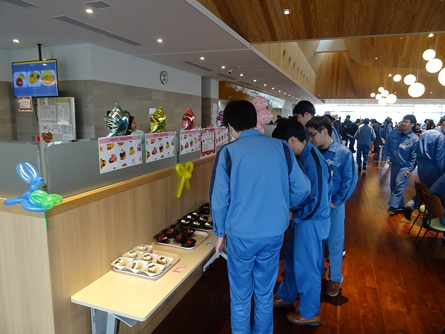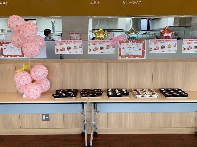 バレンタインDAYは食堂が賑わっています。 2020.02.14 今日はバレンタインデーということで、食堂メニューも デザートが豊富に並んでいます。 男性社員もすこし照れながら、デザートのケーキやプリンを 選ぶ姿が多く見られました。