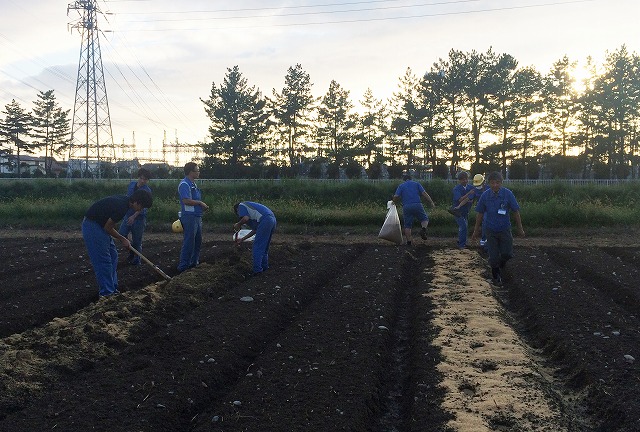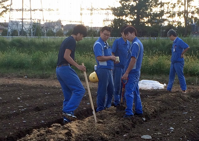 こちらの写真はナイター照明を点けてプレーを楽しんでいる社員の様子です。