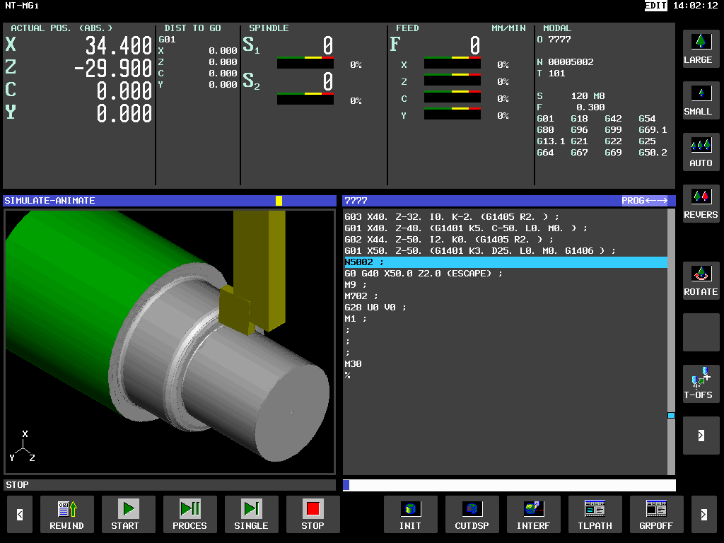 最新のFANUC 0i-TF Plus操作盤を搭載。15インチのタッチスクリーンにより操作性が向上しました。プログラム記憶容量は2MB、1000件のプログラムを保存できます。 NCプログラム作成支援ソフトウェア「NT マニュアルガイドi」標準搭載。Smart Supportと併用することで様々な加工工程に対応します。